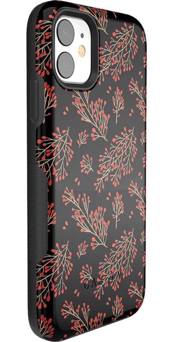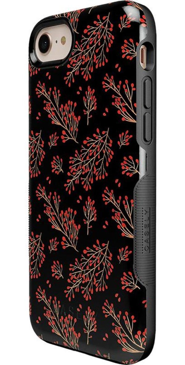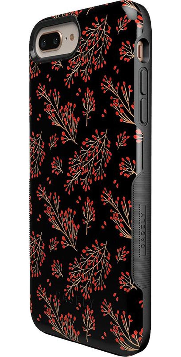 For those of you who have a bit of festive blood in you. this case is for you. With a stunning color combination of black and vermilion red. this case is just calling for fall festivities and dancing. This case is perfect for the person who can run around doing errands all day and turn around and go party all night right after! The jet black background offset by the slender branches of red buds makes it versatile and easily accommodates any outfit. This case’s frilliness doesn’t reduce its ability to protect your phone. however. With specifically rounded edges to protect your phone screen and volume buttons. you’ll never have to worry if you’re sacrificing protection for looks. This case is offered in the Bold and Classic collections. This phone cover can be purchased for all iPhones 6 and up. the latest Samsung models. and the latest Note models.