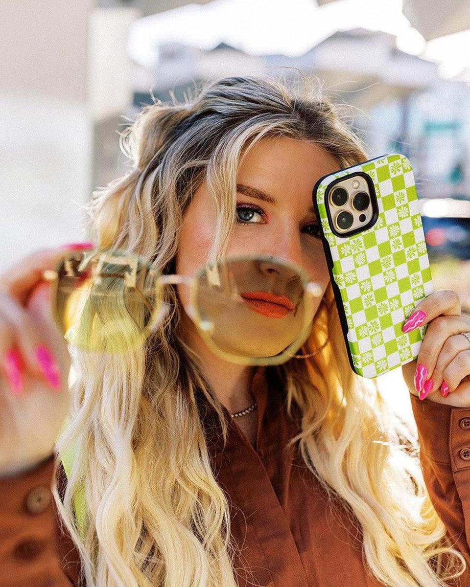 Check. mate! The Daisy Checkerboard is the perfect accessory to adorn your phone. to show your friends. family. and future dates that you’re smart without sacrificing any sexy. The unique. vivid shade of green that is dotted all over the Daisy Checkerboard Case stands out in the crowd. Never worry about losing your phone again. and don’t worry about dropping it either.