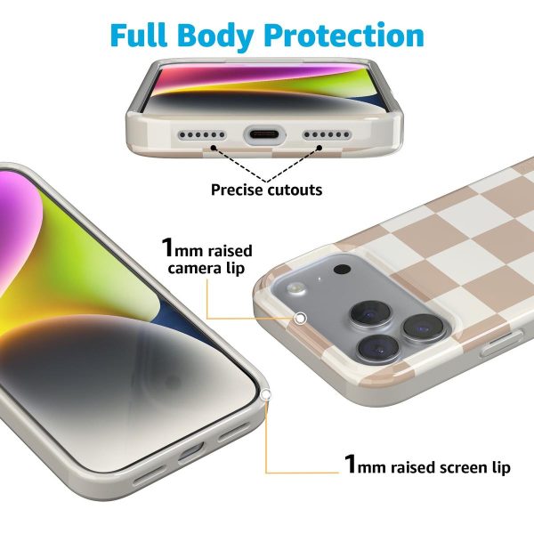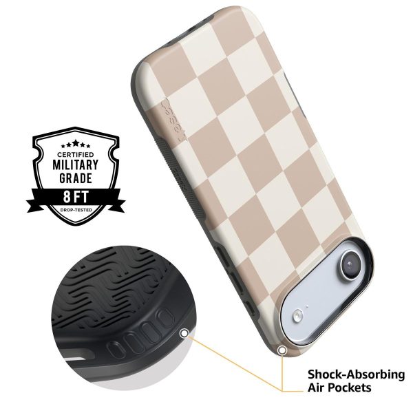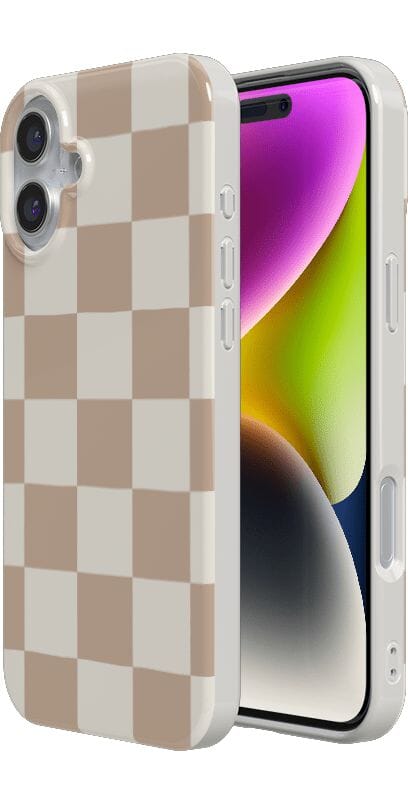 Out of all of our cases. the Fit Check is probably one of the most muted designs – and that’s its greatest strength. Neutrals are huge right now. so why not keep the vibe going with the perfect case to match? If your wardrobe is mainly whites. creams. browns. and beiges. there’s no other choice than the Neutral Checkerboard case for your latest fit check.