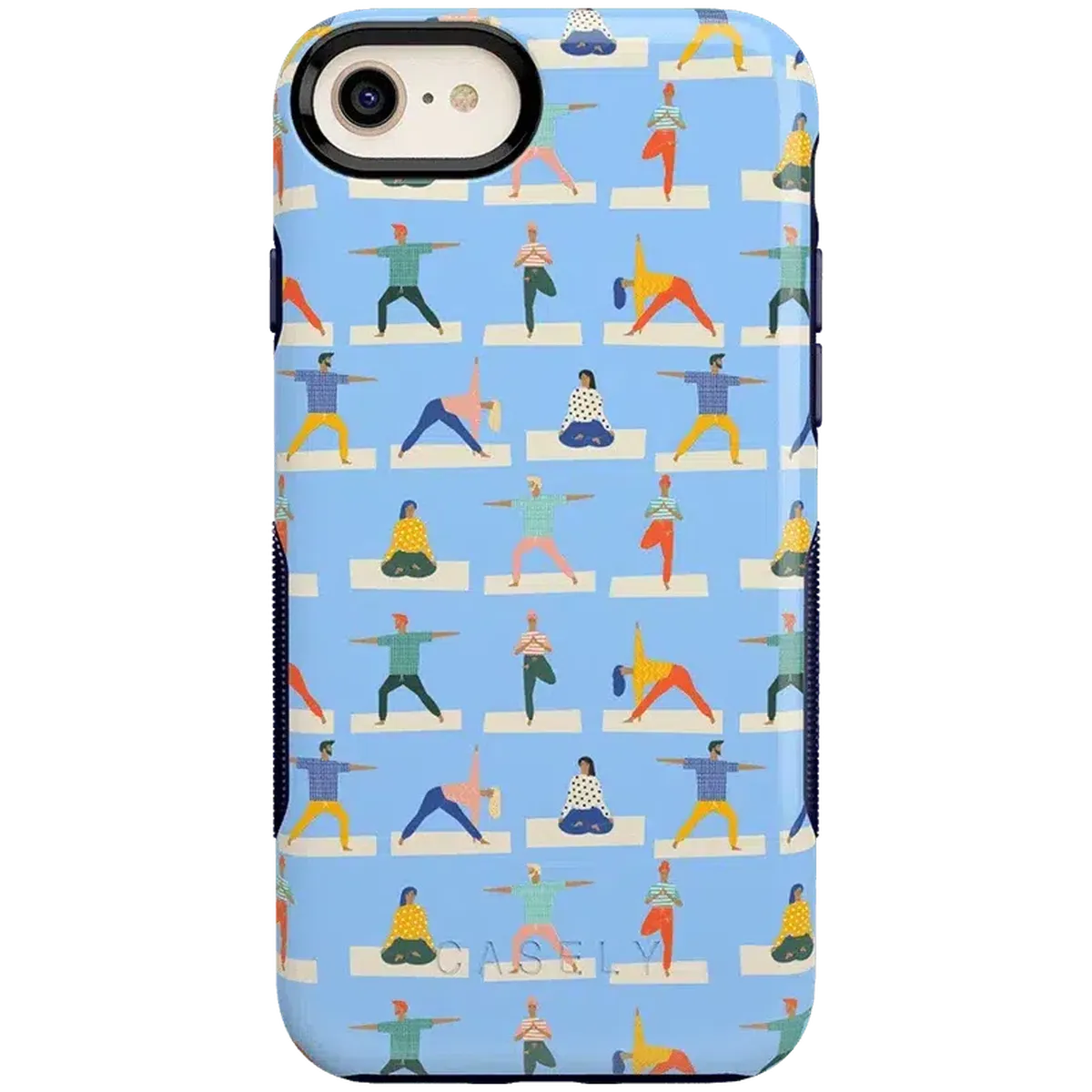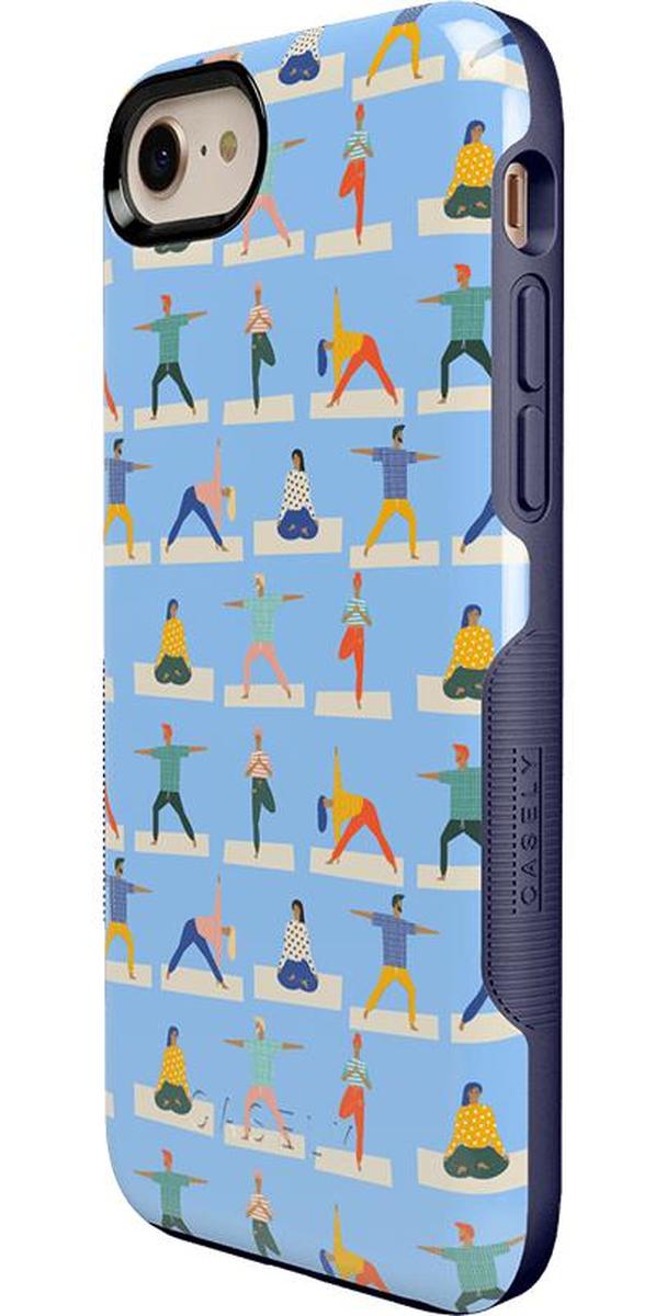 This is just the case for any yoga enthusiast! With the Go with the Flow Light Blue Yoga Case offered in both the Bold and Classic Collections. you will be reminded of your favorite position every time you pick up your phone! Embrace your sense of athleticism and spirituality with this beautifully designed case. It features several people performing authentic yoga poses. like Vriksasana. Sukhasana. Virabhadrasana II. and Utthita Trikonasana. against a calming light blue. The Go with the Flow calms the senses and also gives a fun pop of color. To help create an even more relaxed ambience for your day-to-day schedule. this case is designed with both style and safety in mind. Its raised edges will protect any generation of iPhone in the event of unforeseen drops and tumbles. so your phone won’t fall victim to a cracked screen or broken buttons. Even if you aren’t familiar with chakras yet. you can still choose to embrace all that this yoga-themed phone case has to offer!