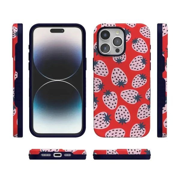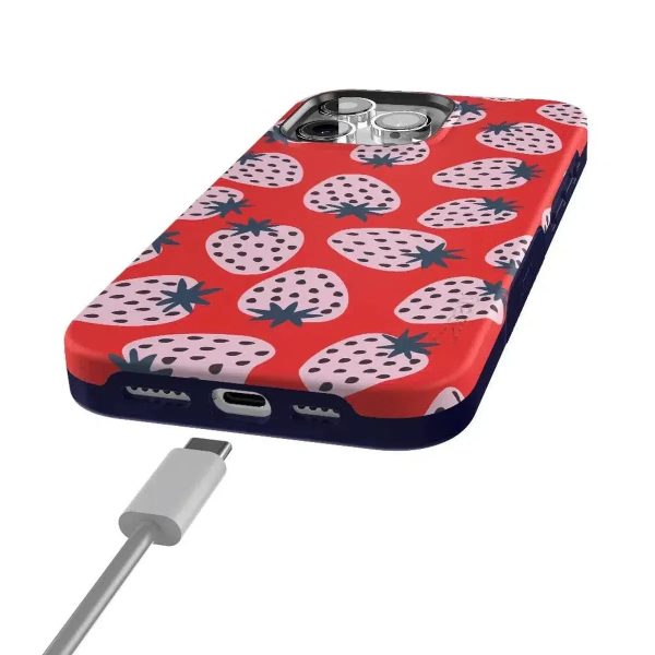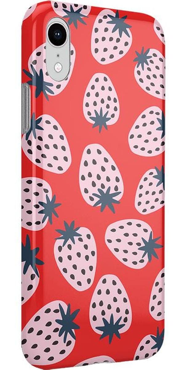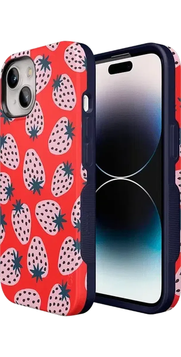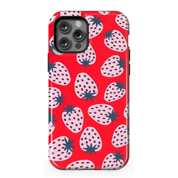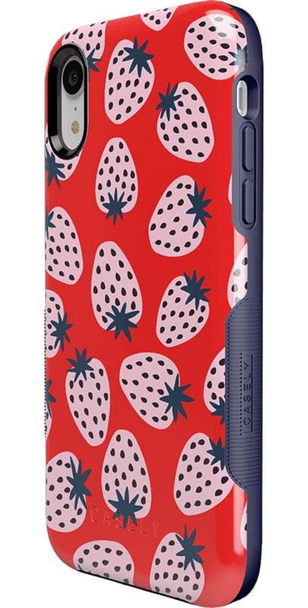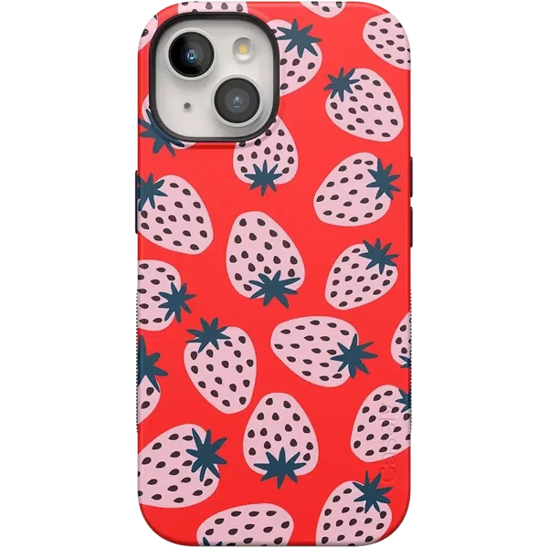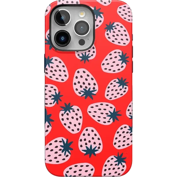 Playful meets protection with this very-strawberry design! The powder-pink strawberries against a popping red background make this case immediately stand out. Compliments and conversations are bound to accompany this case as it says young. bold. and fresh.
