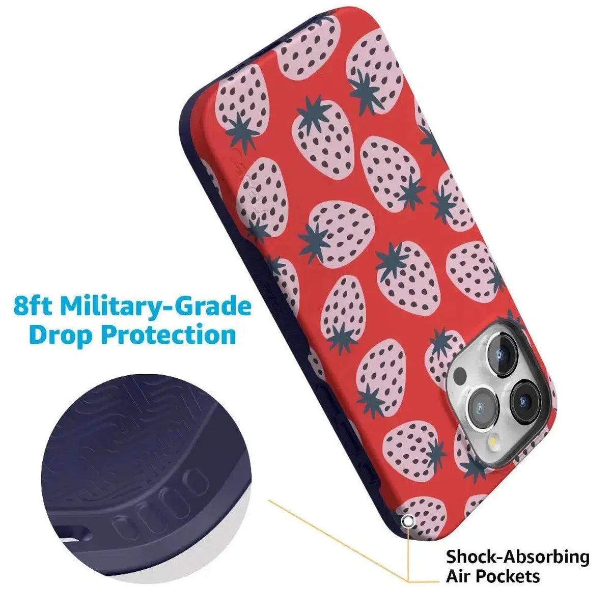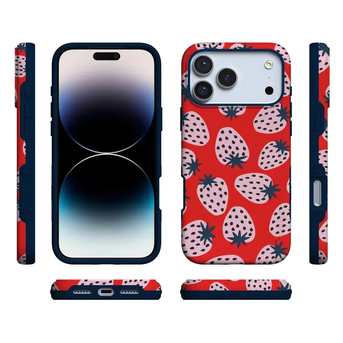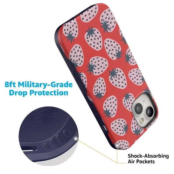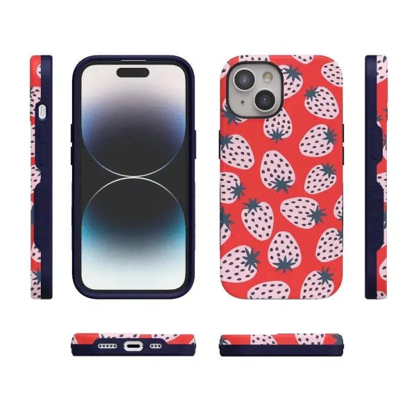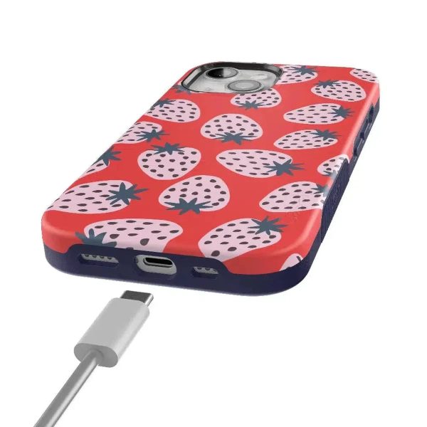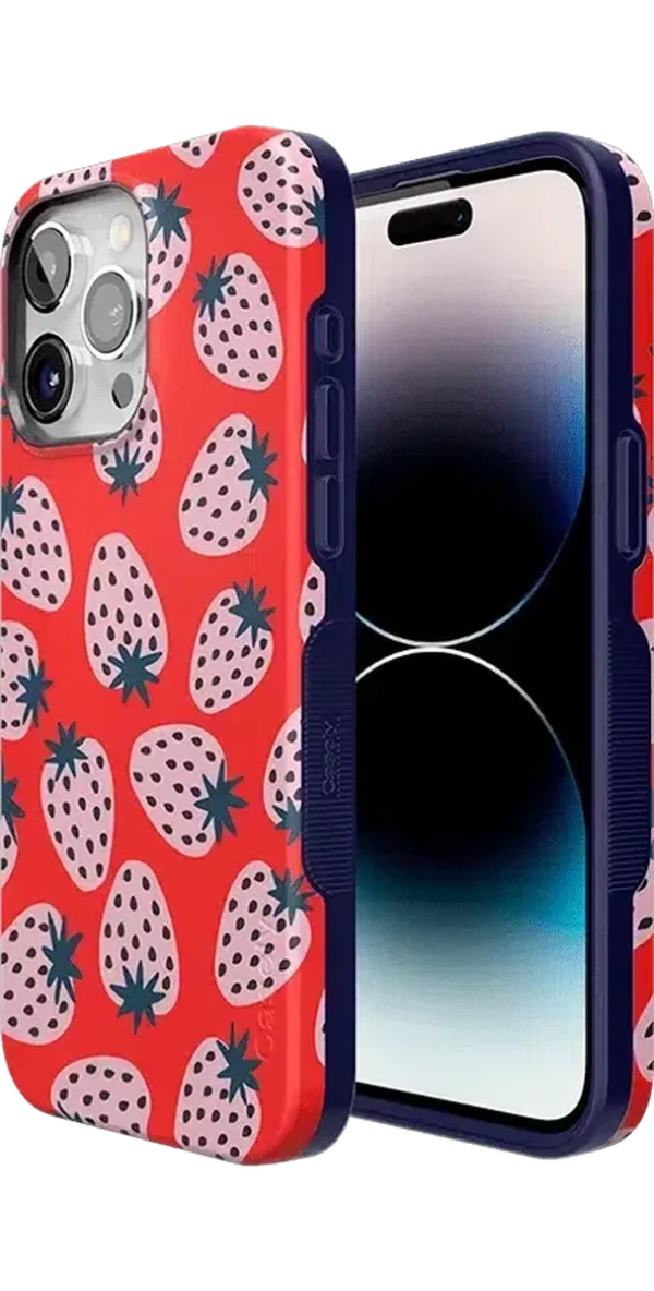 Playful meets protection with this very-strawberry design! The powder-pink strawberries against a popping red background make this case immediately stand out. Compliments and conversations are bound to accompany this case as it says young. bold. and fresh.