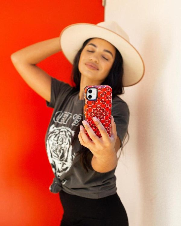 Did you ever want to be one of the cool girls who could say. “I’m with the band”? With the Red Bandana case. you can embody that cool girl band aesthetic. The boldness of the red paisley print gives it a festive feel. perfect for concerts. bonfires. rodeos??you name it! But you should know. this case is not for the faint of heart: it is a piece that is meant to be seen! This pattern is cool enough to make people you’re not just with the band but in it! But paired with the right outfit. it also can be homey. ready to snuggle up with you on the couch with a book. Don’t let its coziness fool you though??it’s perfectly able to withstand hard falls. With specifically rounded edges to guard your phone screen and volume buttons. you’ll never have to worry if you’re sacrificing protection for looks.