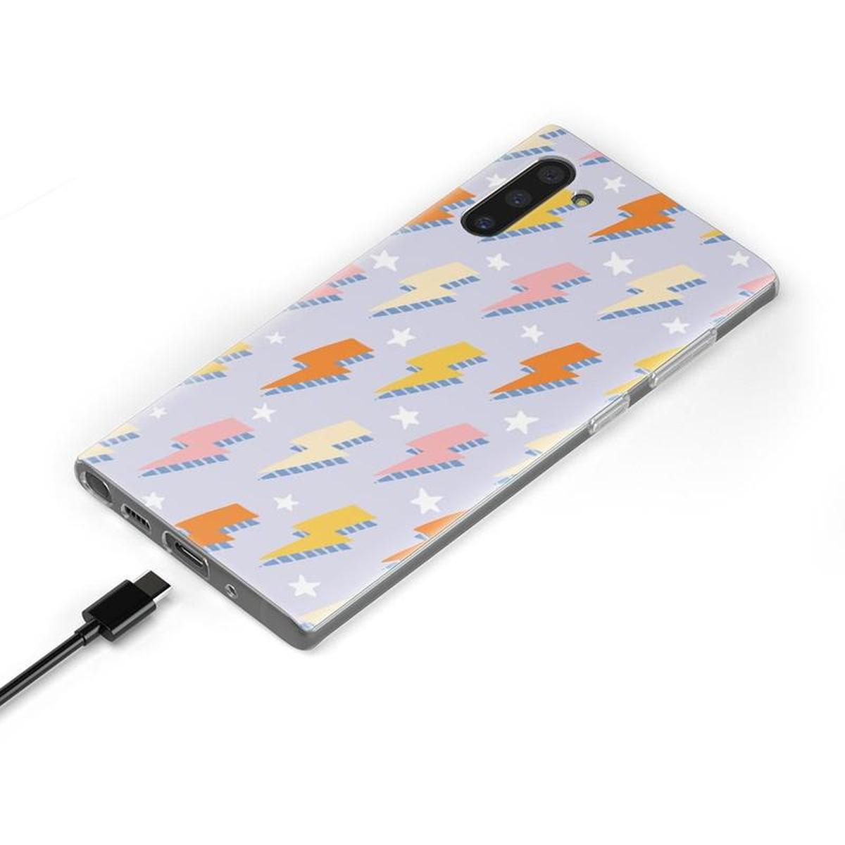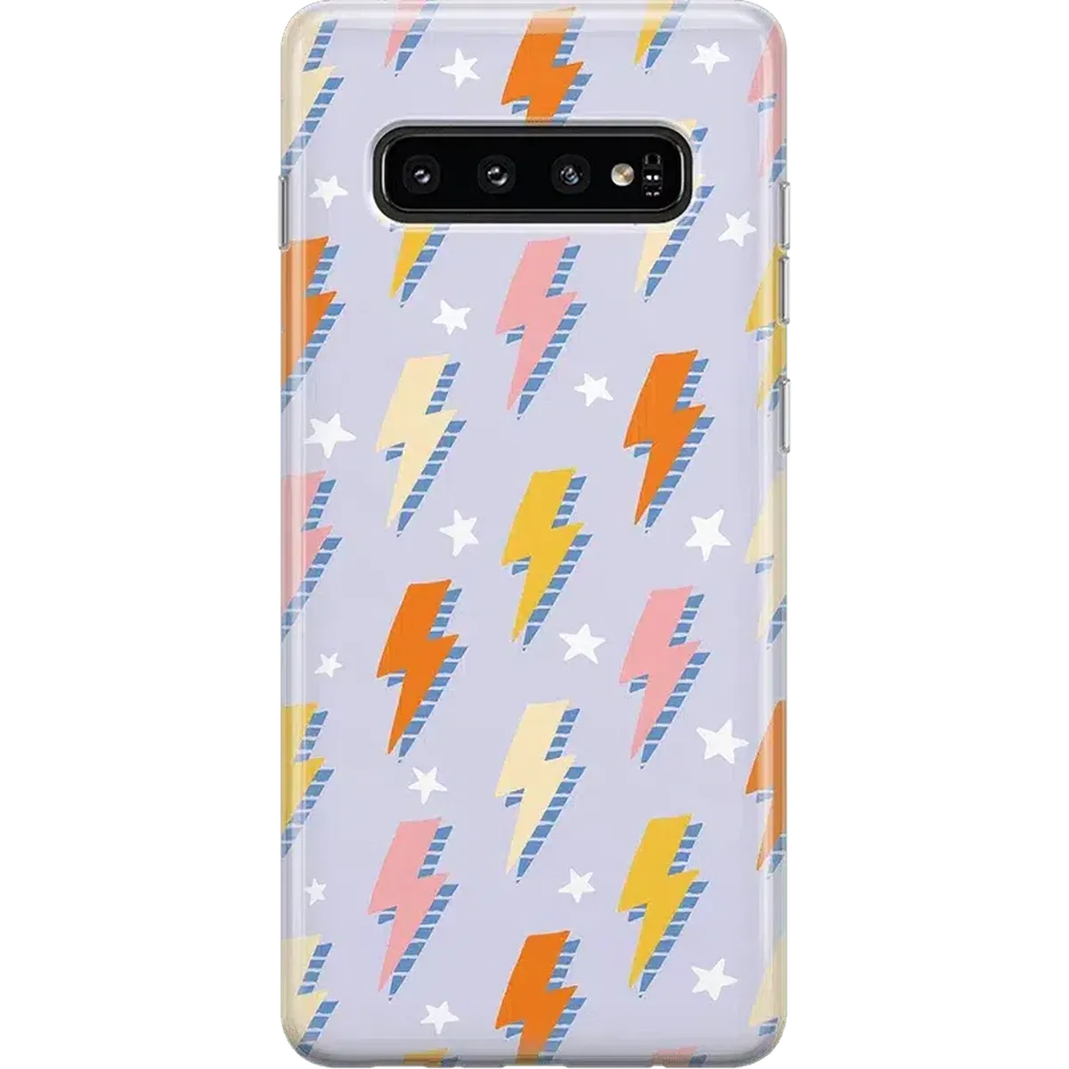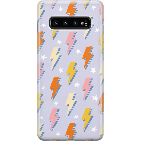 The on-trend weather-themed pattern will keep you and your phone happy come rain or shine. With a pastel purple background and lightning bolts of orange. yellow. and pink. it offers a stylish color palette without being too over the top. Pastels remain an on-trend aesthetic. making this the perfect case if you want to combine those trendy pastels with a bold. graphic print.