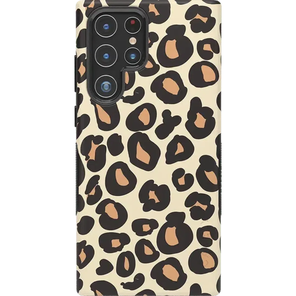 Unleash your inner wild side with our leopard print phone case. suitable for all Samsung Galaxy S22 phones. including the Plus and Ultra editions. Style and protection meet in equal measure with this phone case. designed to keep your device protected while still ensuring your aesthetic is on point. All you need to do is slot your phone right into the case. which protects the entire back and outer edge of your phone.