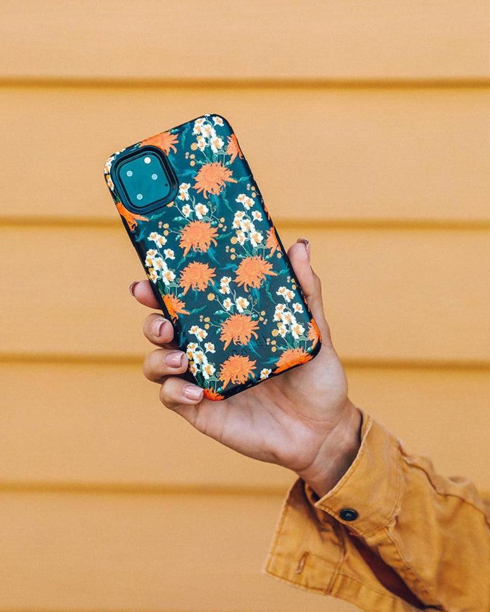 Are the beaches. fresh fruits. and balmy summer evenings in the tropics calling you? This lovely floral print case is the perfect solution for when a tropical getaway is still months out of reach. With exotic orange blossoms. sweet white and yellow blooms. and a dark green background. this cover adds a dash of intrigue to your life. This case is perfect to take on a walk through the park with friends. and its happy. exotic vibes will brighten your day every time you look at it. The vibrant flora doesn’t deter from its ability to protect your precious phone though. It’s perfectly able to withstand hard falls. With specifically rounded edges to guard your phone screen and volume buttons. you’ll never have to worry if you’re sacrificing protection for looks.
