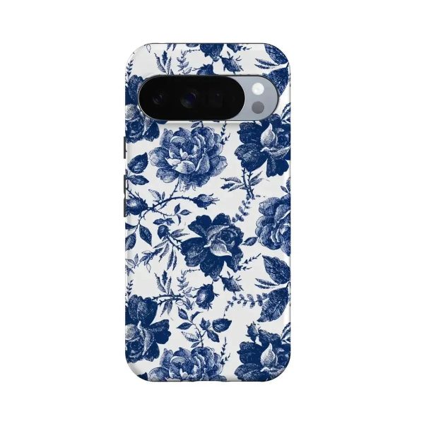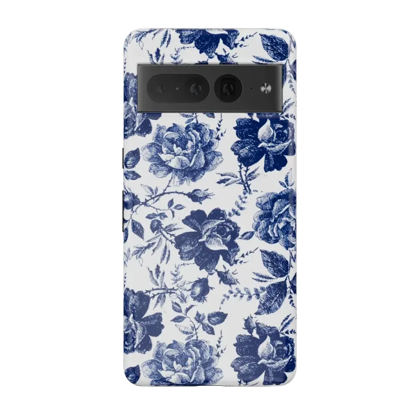 Rose to Fame | Blue & White Rose Floral Google Pixel Case