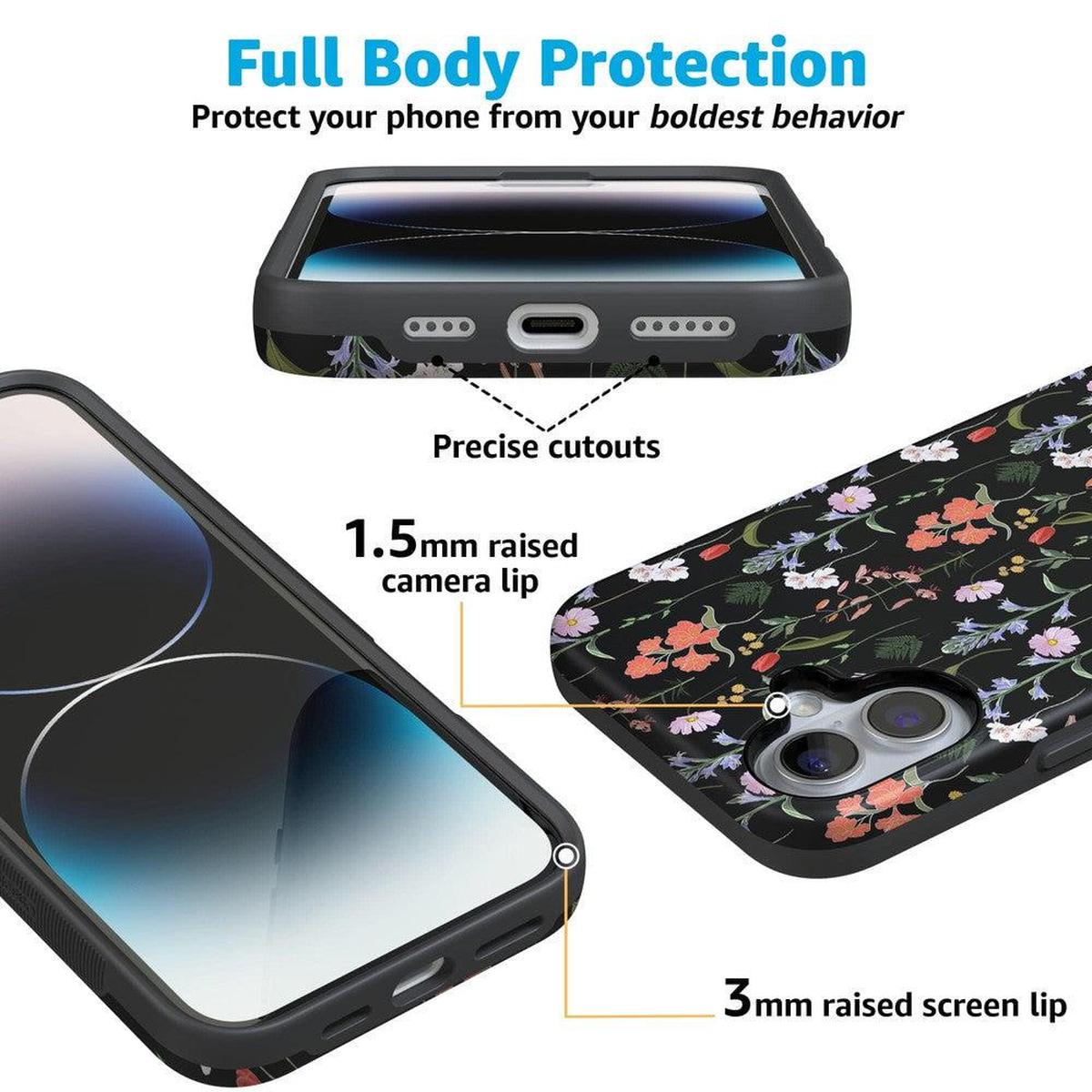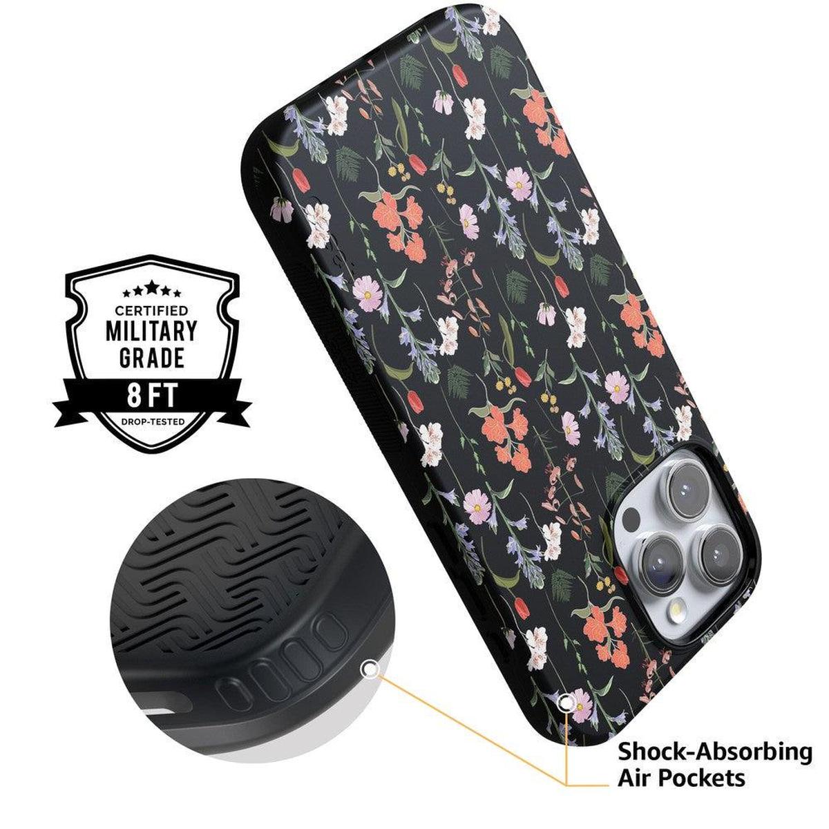 This lush and vibrant case is offered in both the Bold and Classic collection and aptly so. With a stark black background. this case is sure to look chic and elegant for any occasion. as well as flirty and fun with the floral details. The patterning and variety of flowers also add to its flirty. coquettish appeal! The black background also makes the Secret Garden Mixed Floral cover very versatile and easy to match with any outfit. This case is a great accessory for a night out with the girls or as a first date accessory with a sweet. girly outfits. But don’t let the frilly style mislead you. The floral aesthetic doesn’t reduce its ability to protect your phone. With specifically rounded edges to guard your phone screen and volume buttons. you’ll never have to worry if you’re sacrificing protection for looks. This phone case can be purchased for all iPhones 6 and up. the latest Samsung models. and the latest Note models.