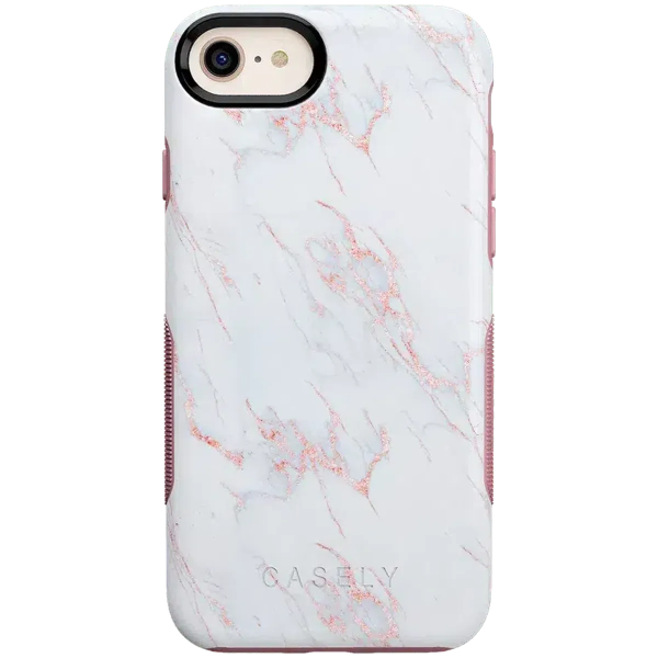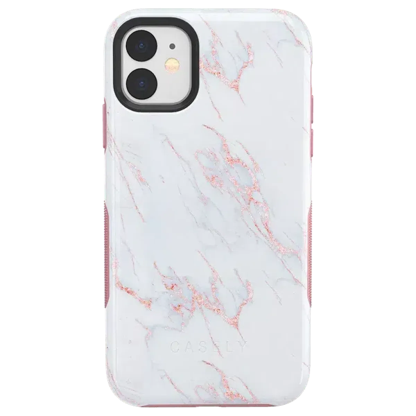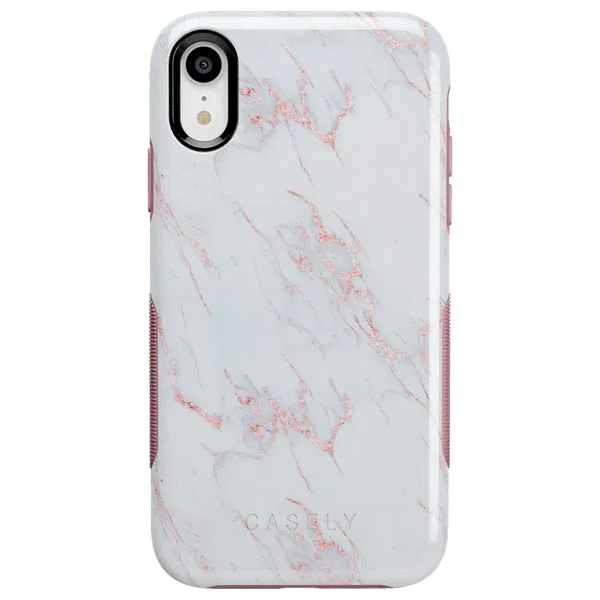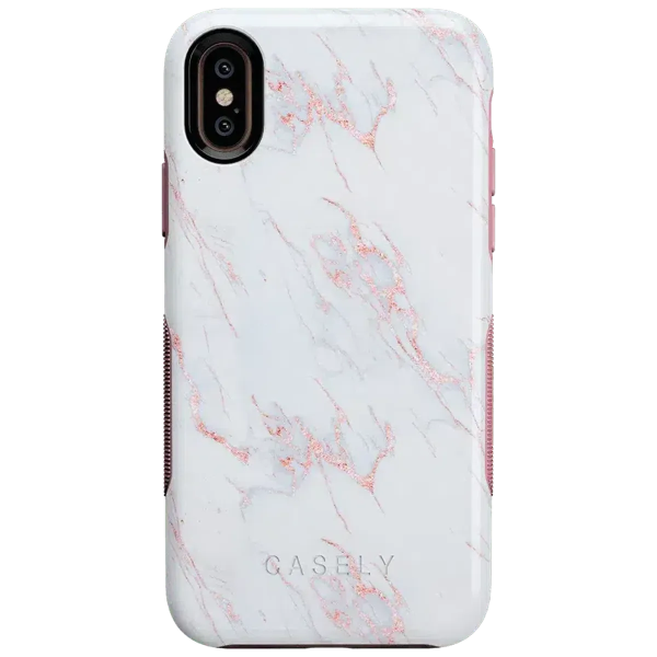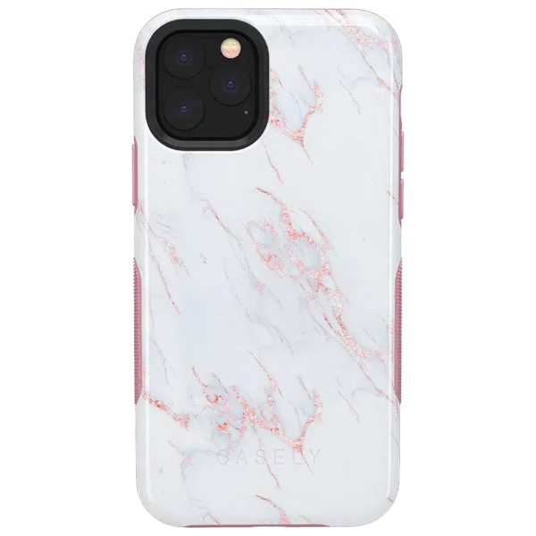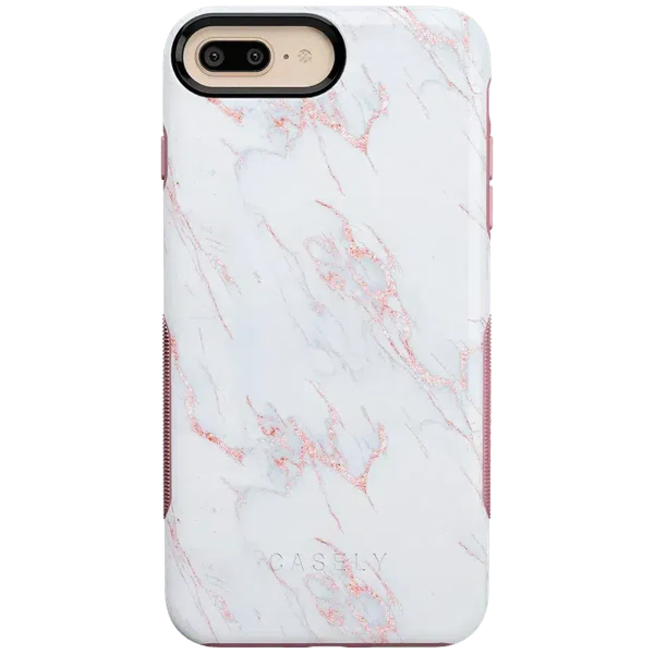 Classic pink and white marble phone case with a glossy finish. This lovely white marble phone case with its understated pink accent makes the shining highlights pop. The diagonal pattern draws the eye. and the coloration of the pattern pushes the style into the spotlight. Marble is an underrated pattern. used for architecture and interior design. but so rarely used for fashion. This case disregards those rules and makes its own path! The case looks great with rose gold accessories and complements almost any shade of pink. Combining fashion with durability. this case can protect a dropped iPhone from a devastating screen shatter. or a broken button. Best of all. this case’s colors work with almost any color scheme! The warm and inviting pink pulls the warmer tones out of the cool marble. and together make a unique and beautiful combination. So whether it’s a classy evening or a party night. this phone case is ready to match with any outfit!