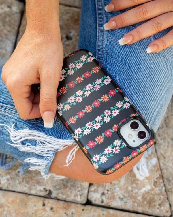 What’s up. dude! This funky daisy chain case is calling for your inner hippy to emerge and let in the sunshine. With tiny. delicate floral prints on a contrasting background. this case is perfect for that natural vibe to shine through day and night! This case is part of the Bold and Classic collections. With a white background. you can be Bold and go forth to festivals until the sun comes up. The clear background in the Classic collection is perfect for when you want to wear a crown of flowers and dance in the sunshine. This is a case you can take with you to the farmer’s market and the coffee shop next door. But don’t let those sweet daisies fool you: it’s perfectly able to withstand hard falls. With specifically rounded edges to protect your phone screen and volume buttons. you’ll never have to worry if you’re sacrificing protection for looks. This phone case can be purchased for all iPhones 6 and up. the latest Samsung models. and the latest Note models.