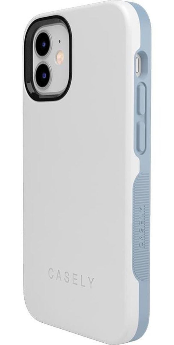 Treat yourself with the simple and smooth White on Light Blue case from The Bold Collection! The back of this case is a crisp. elegant white that gives it a stylish and classic feel. The sides are also white but strategically interrupted by light blue accents on the grips. power button. and volume buttons. The pop of color adds even more character to an already lively phone case. Besides having the essentials to put together an effortless look. the protective White on Light Blue case from The Bold Collection will help prevent damage to your phone. The 3mm raised front lip and 1.5 mm raised camera lip keep your phone screen and camera safe from potential cracks and scratches. Inside air pockets that are smoothly incorporated into the design add yet another layer of safety. and the secure grip will make sure your phone stays firmly in your hands. With all of these advanced safety features. you can get out there and show off your new case without any hesitation!