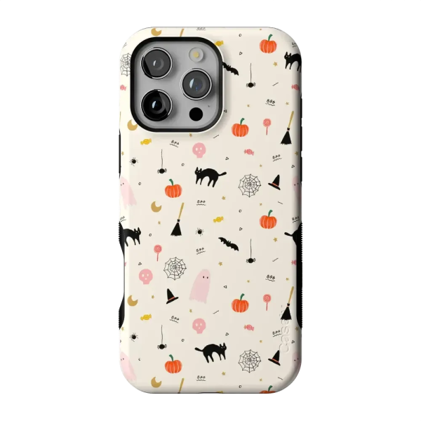 Make every hour magical with the Witching Hour | Cute Halloween Case. Featuring black cats. pumpkins. witch hats. and more. this Halloween phone case is perfect for spooky-cute lovers who want charm without the chills.
