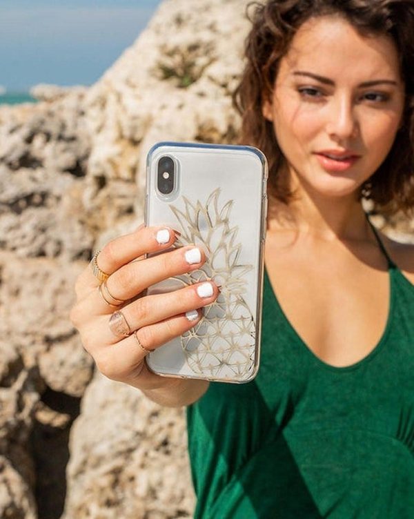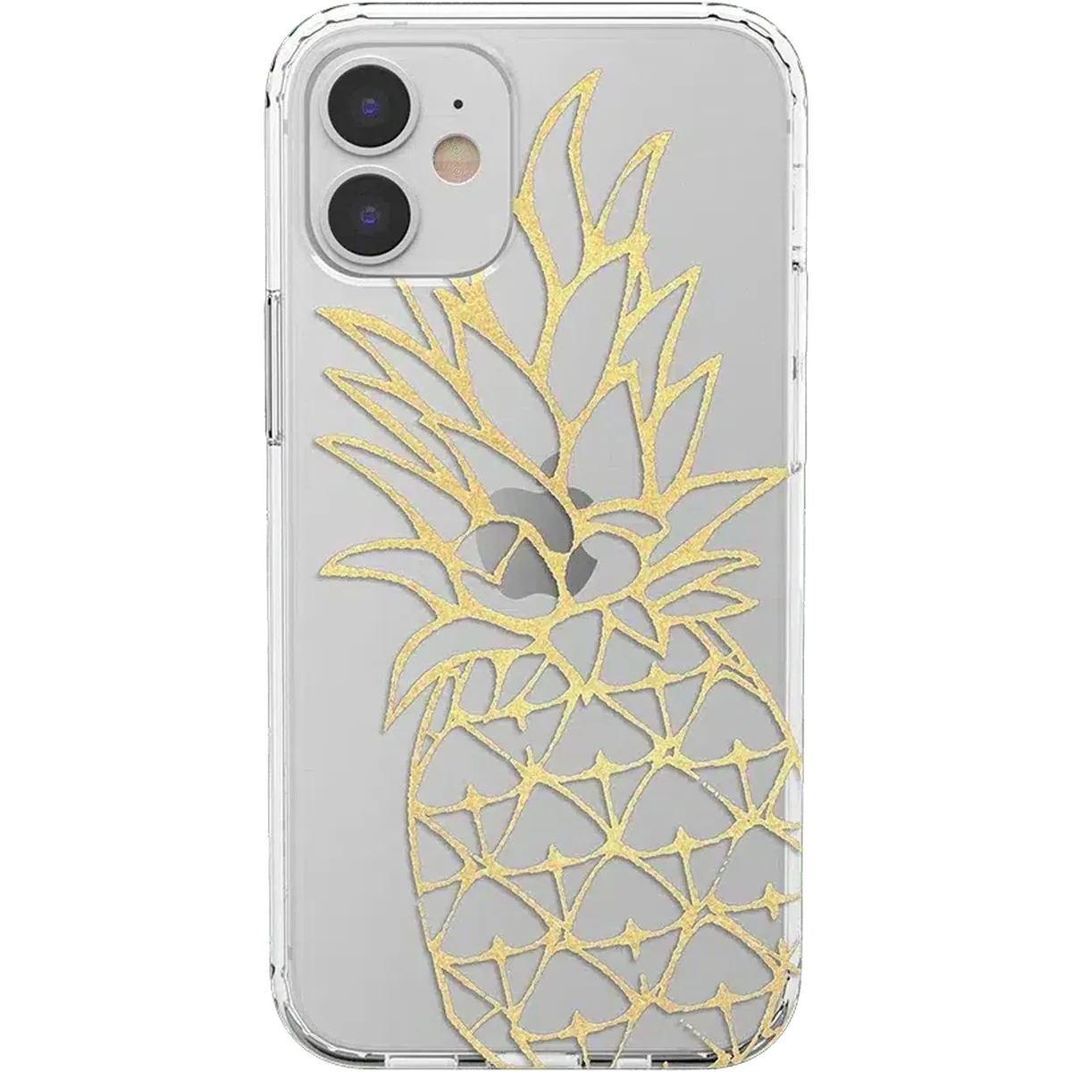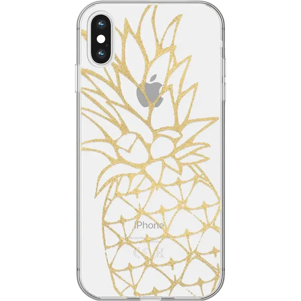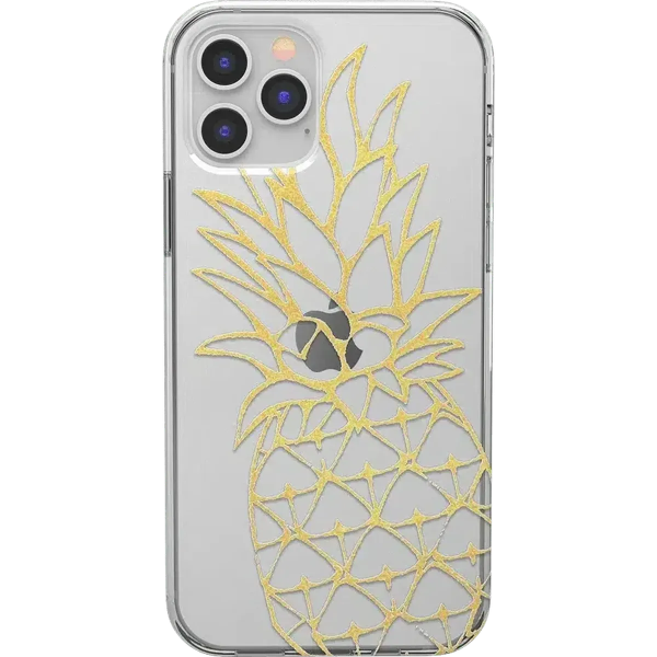 Protective and shiny gold pineapple case. Featuring a hard and clear frame. The Shiny Gold Pineapple Clear Phone Case is sure to provide a festive. tropical feeling to every day. While maintaining this golden. summery aesthetic. the case is also incredibly protective. and it will keep any iPhone safe. The case is made up of two polycarbonate layers on the back and flexible layers of TPU on the sides. Both of these materials amplify the ability the case has for shock absorption. The sides of this phone case are also raised 1.2mm above the height of the screen. This helps to protect the screen from shattering if the phone hits the ground. This limited-edition phone case not only keeps the phone protected. but also promotes the functionality of the phone. The side buttons are embossed and fitted to ensure that they remain responsive to the phone’s buttons.