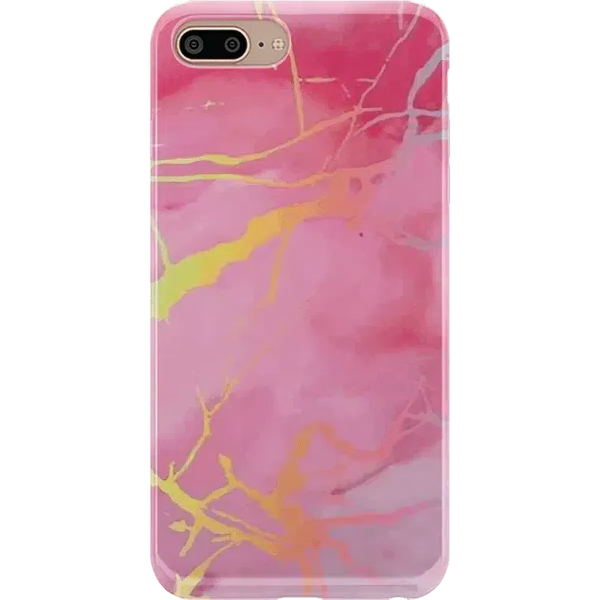The Pink Marble Holo case features a pink marble scheme layered with holographic cracks in chrome and a gloss finish. making the style for this unique phone case one of a kind. Exclusively designed at Casely. the Pink Marble Holo Case is made with dual layers of hard polycarbonate for maximum protection. The TPU flexible sides help to absorb any impact from dropping the phone. The unique design for the sides of the case is expressly made for optimum button response and a secure fit. The budding fashionista will appreciate the light pink color and holographic holo cracks and how it sets off the look of any iPhone. Its exceptional design and engineering make it an extraordinarily durable and long lasting case for any phone case aficionado.